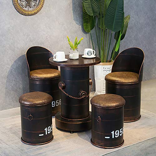 Vintage barpall, barstol, bord och stolar med oljefat, järn Vintage förvaringspall Retro industristil Café Fritid Oljetrumkombination (Färg: 5-delad kostym) Den nya