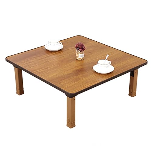 GJ Japanskt trä fällbart te soffbord, fyrkantigt golv justerbart lågt bord, golvaltare bord, vintage tebord lågt bord (Storlek: 80 x 80 cm)