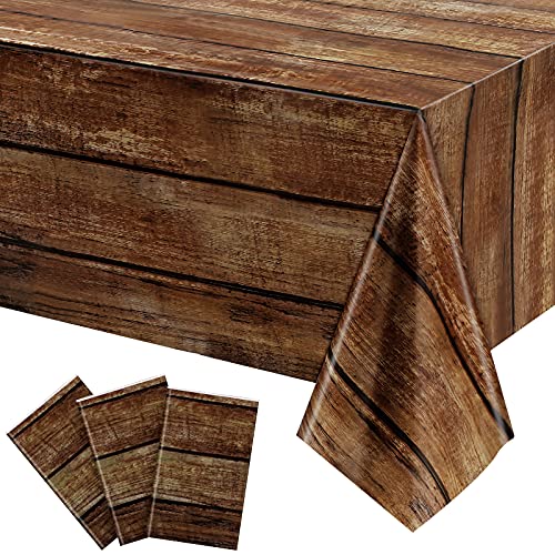 3 delar bruna träkorn bordsdukar rustik plast bordsskydd för rektangulärt bord, vintage bondgårdsstil bordsduk dekorationer för Western Lada tema födelsedag bröllopsfest, 137 x 258 cm