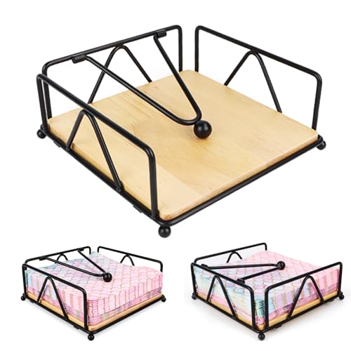 Servetthållare svart trä, med viktad spännarm – servetthållare trä, servettställ bord vintage, vattentät, rostbeständig för kök restaurang (18 x 18 x 7 cm)