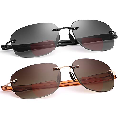 Kantlösa bifokala läsglasögon med fodral solglasögon tonade glasögon utomhus sport solläsare blå ljusblockerande dator glasögon vintage för unisex kvinnor män nära och fjärran UV-blockerare