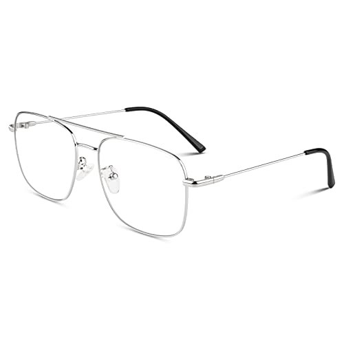 LINVO Glasögon utan synstyrka för män kvinnor klassisk metallram glasögonram vintage pilotglasögon falska glasögon, silver, Medium