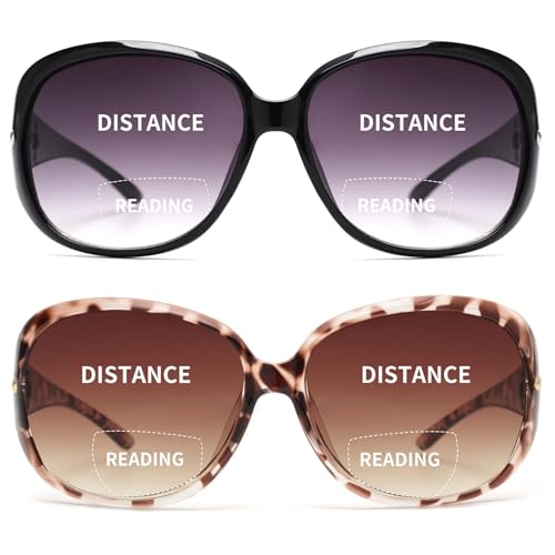 JM 2 par klassiska bifokala läsning solglasögon för kvinnor vintage läsare glasögon utomhus UV-skydd svart + sköldpadda 1,5