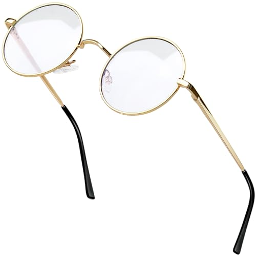 LINVO Glasögon utan synstyrka för män kvinnor klassisk metallram glasögonram vintage pilotglasögon falska glasögon, Guld, Medium