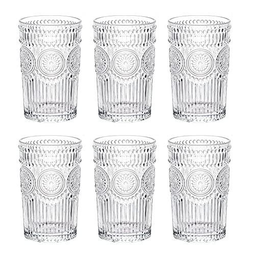 LOYUYU Set med 6, Romantiska Vattenglas, Premium Dricksglas 350 ml, Vintage Glasögon Set för Juice, Drycker, Öl, Cocktail-set om 6 (350 ml)