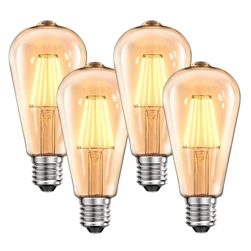 E27 LED vintage glödlampa, dimbar vintage glödlampa E27 4W ST64 E27 LED varmvit 2700K, glödlampa E27 vintage Edison LED E27 idealisk för nostalgi och retrobelysning - bärnsten - 4 stycken(ST64 HPS)