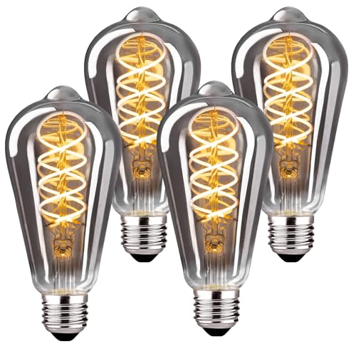 E27 LED vintage glödlampa, dimbar vintage glödlampa E27 4W ST64 E27 LED varmvit, glödlampa E27 vintage Edison LED E27 idealisk för nostalgi och retrobelysning - rökgrå glas - 4 stycken(ST64 YHS)