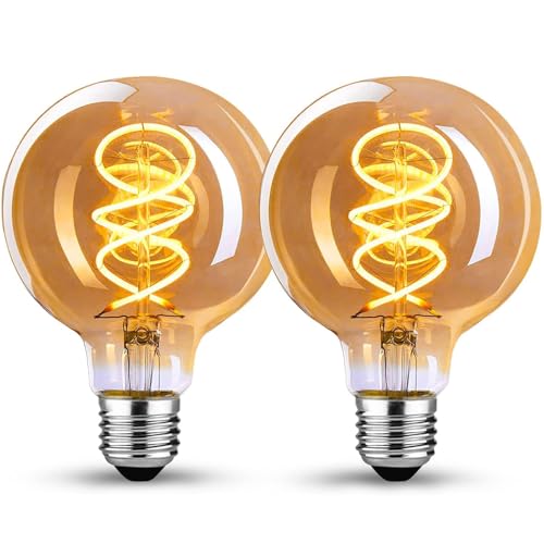 EXTRASTAR Edison Vintage Glödlampa E27 LED G95 6W 2200K, Nostalgi Dekoration, 2 Stycken