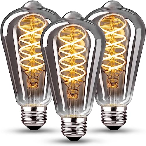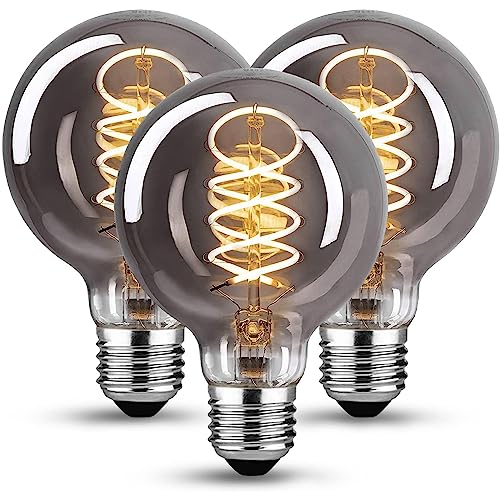 KANQIAO Edison Vintage Glödlampa E27, E27 LED Vintage Dimbar 4W Glödlampa E27 Led Varmvit Edison Glödlampa E27 Vintage Idealisk för nostalgi och retrobelysning i hemmet Café Bar, rökgrått glas - 3 st