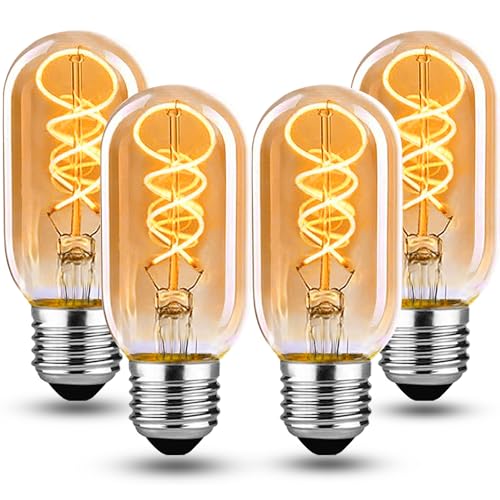 Edison LED Vintage-glödlampa, Dimbar glödlampa E27 4W LED Varmvit, Glödlampa E27 Vintage Edison Idealisk för nostalgi och retrobelysning - Bärnsten - 4 delar (T45 HPS)