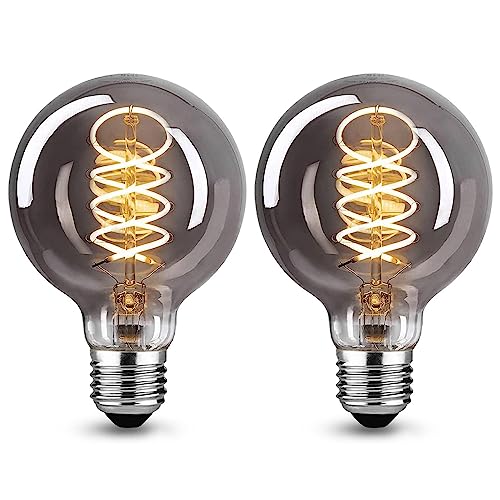 Edison Vintage Glödlampa E27, E27 LED Vintage Dimbar 4W Glödlampa E27 Led Varmvit Edison Glödlampa E27 Vintage Idealisk för nostalgi och retrobelysning i hemmet Café Bar, rökgrått glas - 2 st.