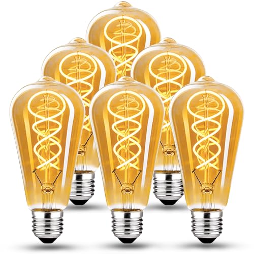 Edison vintage glödlampa E27, E27 LED vintage dimbar 4W retro LED-lampa varmvit 2700K Edison glödlampa E27 vintage idealisk för nostalgi och retrobelysning i hemmet, cafébar - 6 stycken(ST64 SLX)