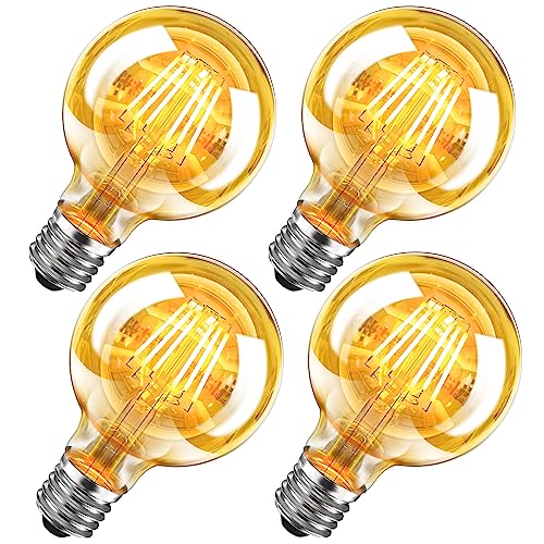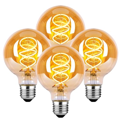 Edison LED vintage glödlampa, dimbar glödlampa E27 4 W LED varmvit, vintage Edison dimbar lampa E27 perfekt för nostalgi och retrobelysning – bärnsten – 4 stycken (G80 HPS)