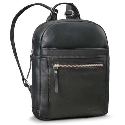 ROYALZ City ryggsäck dam liten läder dagryggsäck "Delaware" modern vintage ryggsäck handväskor äkta läder lämplig för DIN A5-dokument dagryggsäck, svart, M