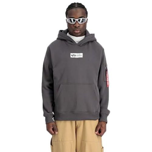 Alpha Industries herr metallplatta hoodie, vintage grå, L, Vintage grå, L