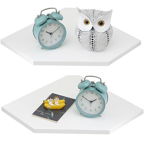 Gieanoo Hörnhylla hängande hylla vit, ek massivt trä set om 2 vita hörnhylla runda ändar vägghylla trä vintage lantlig stil hylla för sovrum vardagsrum 22 cm