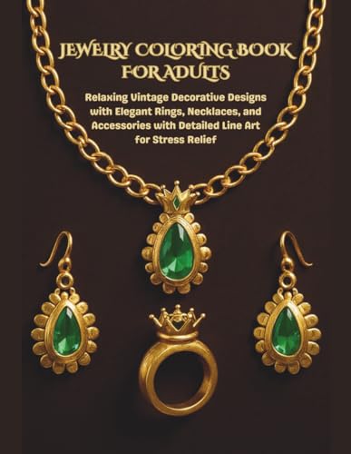 JEWELRY COLORING BOOK FOR ADULTS: Relaxing Vintage Decorative Designs with Elegant Rings, Necklaces, and Accessories with Detailed Line Art for Stress Relief