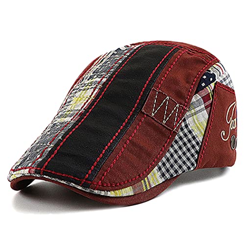 JFAN Beret Man Bomull Engelska Kepsar Man Justerbara Berets Mode Man Vintage Newsboy Cap En storlek, 2 - Bordeaux, one size