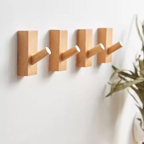 HomeDo Självhäftande väggkrokar trä, klädkrokar, självhäftande krokar, dekorativa garderobskrokar trä, vintage garderob, träkrok, hattkrok (bok-rektangel-set om 4)