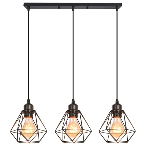 TOKIUS 3-Flame Pendant Lamp Vintage Industrial Hanging Lamp med geometrisk design E27-lampa gjord av järnbur Lampskärm svart hängande lampa för matbordskök (hänglampa, bar)