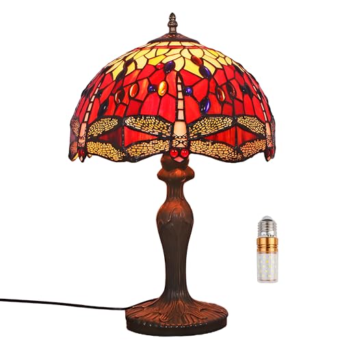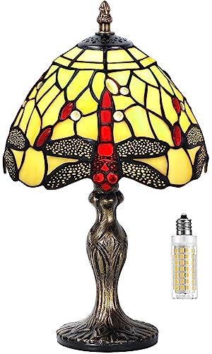 MIAOKE Tiffany Style Table,Vintage Table Handcraft Glass Painting Lampshade Table Lamps for Bedroom Bedside Lamp Study Office (Light-W-Dragonfly)