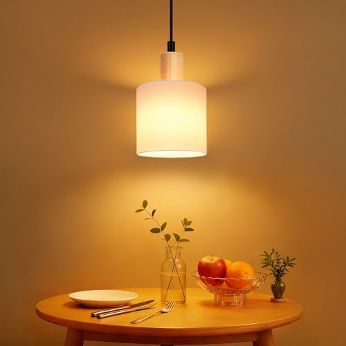 Glitzerlife Pendellampa 1 Ljuskälla Matsallampa Trä - Matsal Lamp E14 Vit Vintage Hänglampa Rustik Köks Hall Lamp Stoff För Hall Matsall Sovrum Vardagsrum