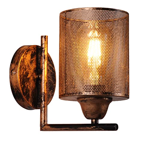 AIRTWESD E27 Industriell vägglampa, Steampunk Metal Mesh Lamp Shade Indoor Bedside Lamps Vintage vägglampa för Garage Door Porch Hallway (utan glödlampa)