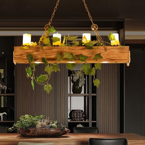 MyLjp Trä Rustik Taklampa Vintage Dining Table Lamp Taklampa 4 Flammor Retro Industry Taklampa Höjdjusterbar Ljuskrona För Vardagsrum Bar Taklampa Cafe Kitchen Decoration Taklampa