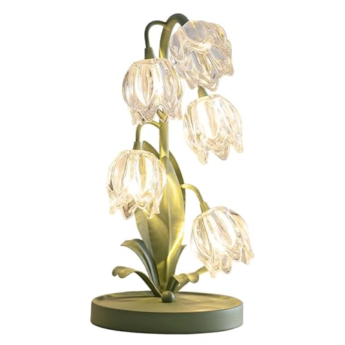 Grön tulpanbordslampa Vintage Flower Bedside Desk Lamp w/G4 LED -glödlampor Elegant blommig nattdukslampa för sovrums vardagsrumskontor Läsning