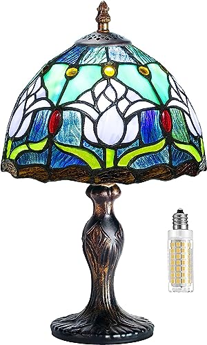 MIAOKE Tiffany Style Table Lamp, Vintage Table Lamp Stained Glass Craft Lamp Lampshade Table Lamps for Bedside Lamp in Bedroom Study Office (Blue Tulip)