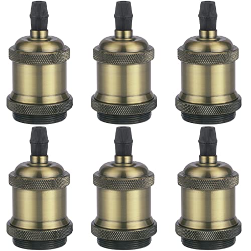 DiCUNO E27 Vintage Solid Lamp Socket Keramisk Lamphållare Edison Skruv Glödlampa Socket Adapter, 6 Stycken