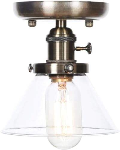 Vintage with Switch Ceiling Light with Semi-Flush Mounted Transparent Slope Shade Ceiling Lamp Fixtures for Hallway Loft Kitchen Bar Close to Ceiling(Bronze)