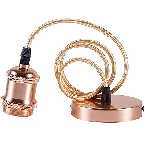 Hsthe Sea Lamp Suspension med skruvring,E27 Lamphållare med Sockel Kabel Aluminium Vintage Retro Lamphållare,Pendellampa med E27 Sockel,100 cm Textil Kabel,Höjdjusterbar,Gyllene