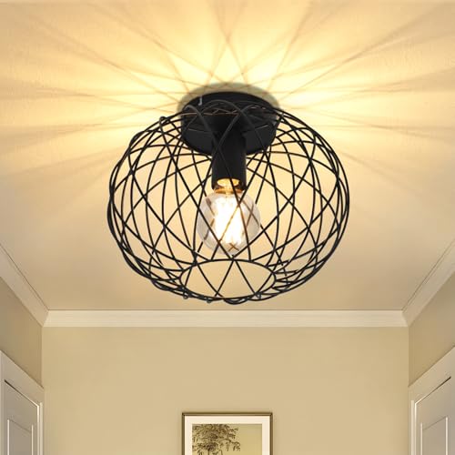 Glitzerlife Svart Taklampa Industrial Halllampa - E27 Vintage 1 Ljuskälla Rond Ø 25cm Retro Metall Lampaskärm Käfig Gitter Matsal Lamp Vardagsrum Köks Sovrum
