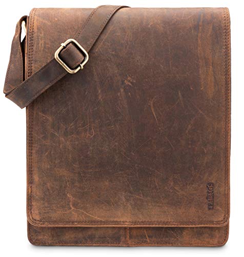 LEABAGS London läderaxelväska I laptopväska upp till 13 tum I Messenger Bag av äkta buffelläder i vintage look I axelväska I Arbetsväska I 26 x 8 x 31 cm