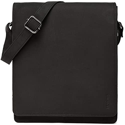 LEABAGS London Leather Shoulder Bag I Laptop Bag upp till 13 tum I Vintage Look Genual Buffalo Leather Messenger Bag I Shoulder Bag I Work Bag I 26x8x31cm I Black
