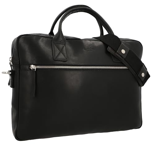 Gusti axelväska läder – Elijah vegetabilisk garvad portfölj univäska axelväska arbetsväska Messenger Bag lärarväska affärsväska stor laptopväska vintage, svart