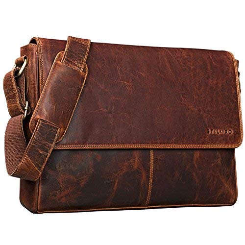 STILORD Davis Messenger Bag läder 13" vintage laptop väska universitet kontor axelväska bok shoppingväska äkta läder, florida - brun, M, Skolväska