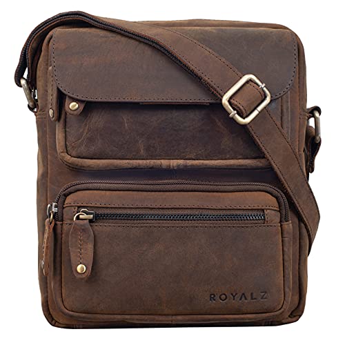 ROYALZ Axelväska män liten läder vintage look liten axelväska män mini messenger bag läderväska, Nevada brun, M,