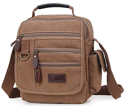 Sunsomen herrväska kanvas axelväska liten messenger crossbody väska arbetsväska vintage multifunktion, Kaffe, One_Size