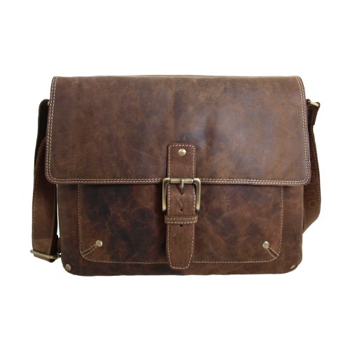 Shalimar Laptopväska Messenger Bag/axelväska av oljat läder för 13-tums bärbara datorer, Naturlig buckskin, Maße (BxHxT): ca. 37x28x14 cm, Vintage Messenger Bag