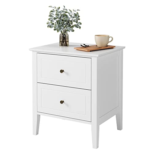 FOREHILL Sängbord nattduksbord vitt, sidobord med 2 lådor sänglådor för sovrum vardagsrum 50 x 40 x 55,5 cm, vintage
