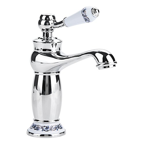 Keramik Antik Mässing Kran för Badrum och Kök - Blå och Vit Porslin Lång Hals Vintage Blandare för Tvättställ och Handfat - Kall/Varmvatten (Antico)