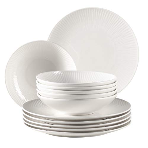 MÄSER 931461 Dalia, middagsservis för 6 personer av högkvalitativt hotellporslin i vitt, 12-delat tallriksset i vintage-design, hållbart porslin