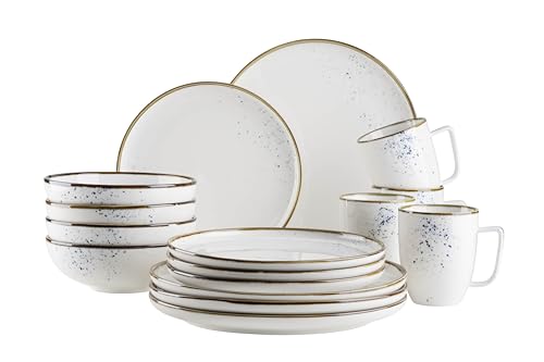 MÄSER Serie Pintar, högkvalitativt porslinsset för 4 personer, 16-delad kombiservis med ljus glasyr, visuella bruna stänk och fin kant i vintage handgjord look, porslin
