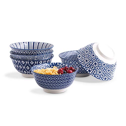 Selamica flingskålar, 236 ml desserttallrikar set med 6, små skålar set, porslin soppskålar för efterrätt, glass, vintage blå