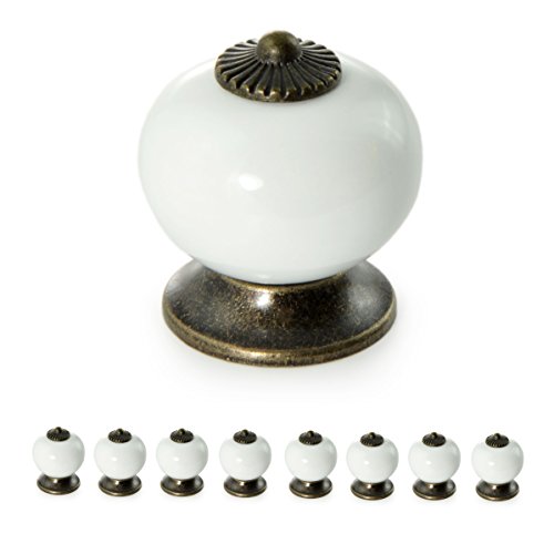 Ganzoo Möbelknoppar set av porslin/keramik vit/möbelhandtag, dörrknopp, skåpknopp, möbelknopp & handtag, vintage, shabby, lantställe, antik för möbler, låda (8 stycken, vit)