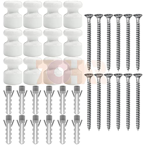 ZOHAR 12 stycken vintage isolatorer för textilkablar porslinsolatorer ytmonterad kabelhållare kabeldragning retro väggstift isolator av porslin vägg och takstift kabelhållare vit glänsande 18 mm