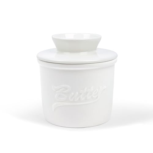 fanquare Vintage smörburk i porslin med lock, fransk keramisk smörgryta med vattenlinje, förseglad smörfat för köksbänkkylskåp, vitt alfabet