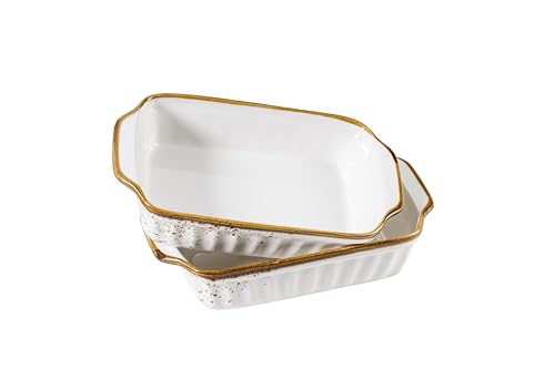 MÄSER Serie Pintar, högkvalitativt bakformsset, 2 delar med 23 x 14,5 cm vardera, med ljus glasyr, visuella bruna prickar och fin kant i vintage handgjord look, porslin